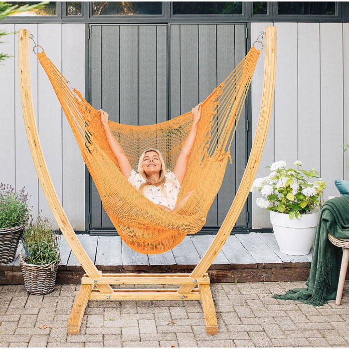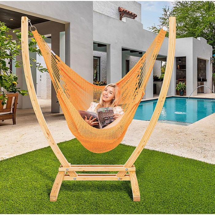 HAMMOCK CHAIR JUMBO (ORANGE) and WOOD Stand - COMBO
